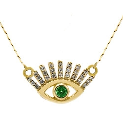 Złoty naszyjnik oko proroka ze Szmaragdem 0.12 ct i cyrkoniami długość 42-45 cm z przedłużką próba 585