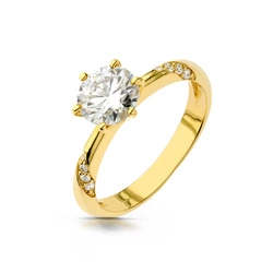 Złoty klasyczny pierścionek z Moissanitem 1 ct w 6 łapkach oraz 10 Brylantami o łącznej masie 0,06 ct
