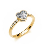 Złoty pierścionek z Moissanitem 0,8 ct w kształcie serca oraz 8 Brylantami o łącznej masie 0,048 ct