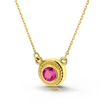 Złoty naszyjnik celebrytka z Turmalinem różowym 0.25 ct kamieniem kobiecej siły długość 42-45 cm średnica 0,8 mm próba 585