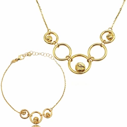 Nowoczesny komplet złote kulki kolia i bransoleta z żółtego złota próba 585