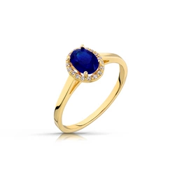Złoty pierścionek Elegante z naturalnym Szafirem 2 ct kamieniem ochrony i pewności siebie oraz Brylantami 0,20ct