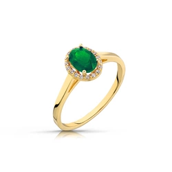 Złoty pierścionek Minimal ze Szmaragdem kamieniem młodości 0,7 ct i cyrkoniami