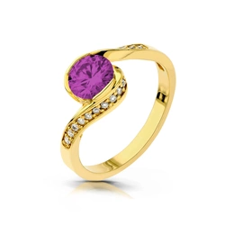 Złoty klasyczny pierścionek mijanka z Ametystem 1,5 ct i cyrkoniami