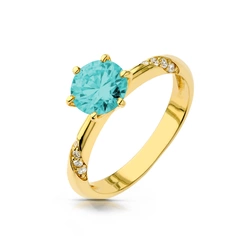 Złoty klasyczny pierścionek z Topazem 1,6 ct w 6 łapkach oraz cyrkoniami