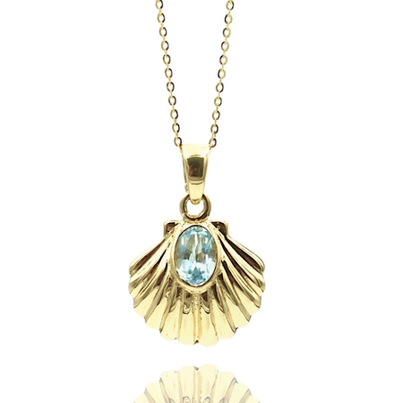 Złota zawieszka muszla "Skarby Oceanu" z Topazem ct kamieniem siły i optymizmu próba 585