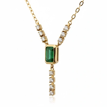 Złoty naszyjnik krawatka ze Szmaragdem 0.48 ct kamieniem miłości i młodości długość 42-45 cm i cyrkoniami próba 585