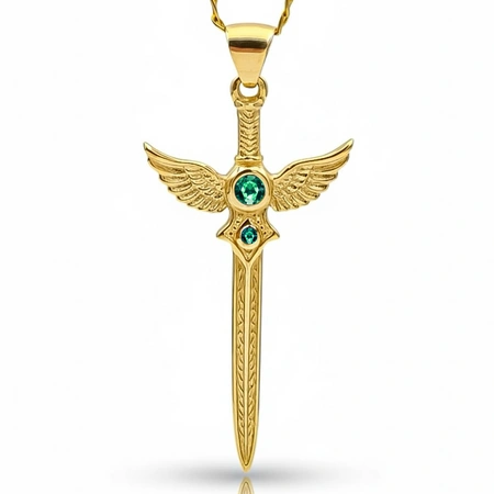 Złota zawieszka Miecz Walkirii ze Szmaragdami kamieniem wiecznej miłości i dobrobytu