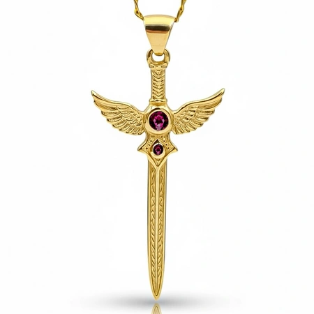 Złota zawieszka Miecz Walkirii z Rubinami kamieniem miłości i namiętności