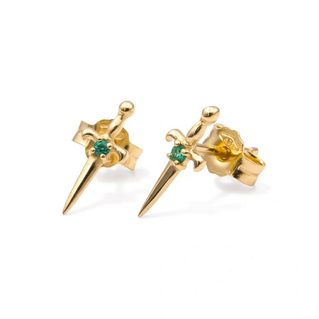 Złote kolczyki Sztylety ze Szmaragdem próba 585