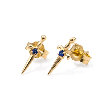 Złote kolczyki Sztylety z Szafirami kamieniami ochrony i pewności siebie zapięcie na sztyft próba 585