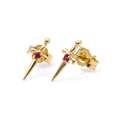 Złote kolczyki Sztylety z Rubinami kamieniami miłości zapięcie na sztyft próba 585