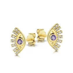 Złote kolczyki na sztyft Oko Proroka z Ametystem kamieniem spokoju